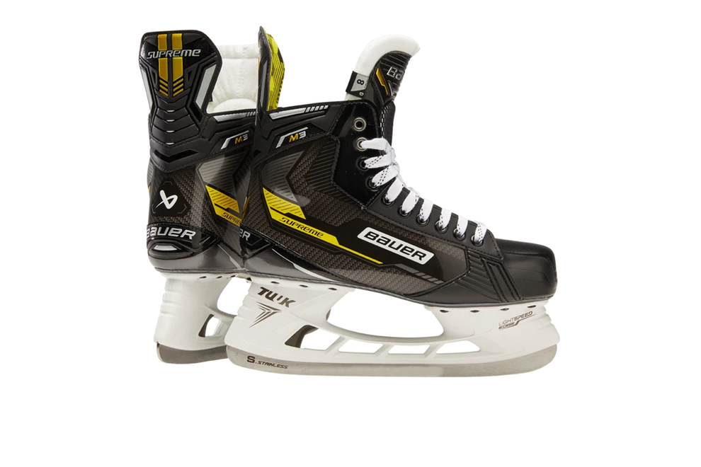 The Supreme M3 skate is designed for competitive players looking for the best bang for their buck. The Digi Comp quarter makes the boot lighter, helping you get a faster, more explosive stride. Its soft, sublimated microfiber liner provides step-in comfort while the LS Edge holder makes it easy to swap steel for those carrying a mix of profiled blades.