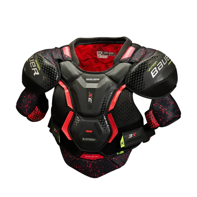 The Vapor 3X shoulder pad delivers the perfect balance of protection, comfort, and flexibility for the competitive player. The low profile shoulder cap keeps everything covered on the ice, while the VENTAPRENE vest allows for superior comfort and flexibility. The protection package goes above and beyond with an integrated segmented spine with PE insert. The sublimated THERMOMAX liner is designed to manage sweat and keep you cool all game long.